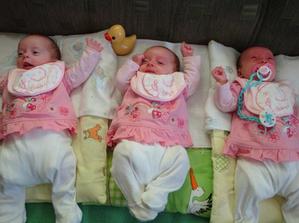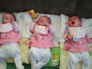 🙂 jéj krásne detičky. to musí byť doma radosti. Obdivujem maminku, tri detičky naraz. Fuuu to dalo určite zabrať, keď boli malinke. Nech sa darí celej rodinke. Dievčatká ste zlatučké 🙂