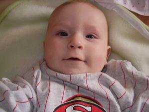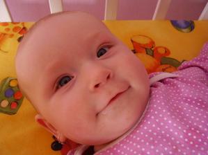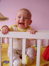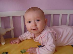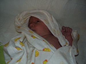 Tak už som tu....mamina si povedala " konečne " ked som 9.9.2009 o 11: 34 zaplakala prvý krát.Som taký drobček. MAm len 49cm ale za to pri narodení som mala 3750g. Mamina s tatinom sa mi velmi tesia.