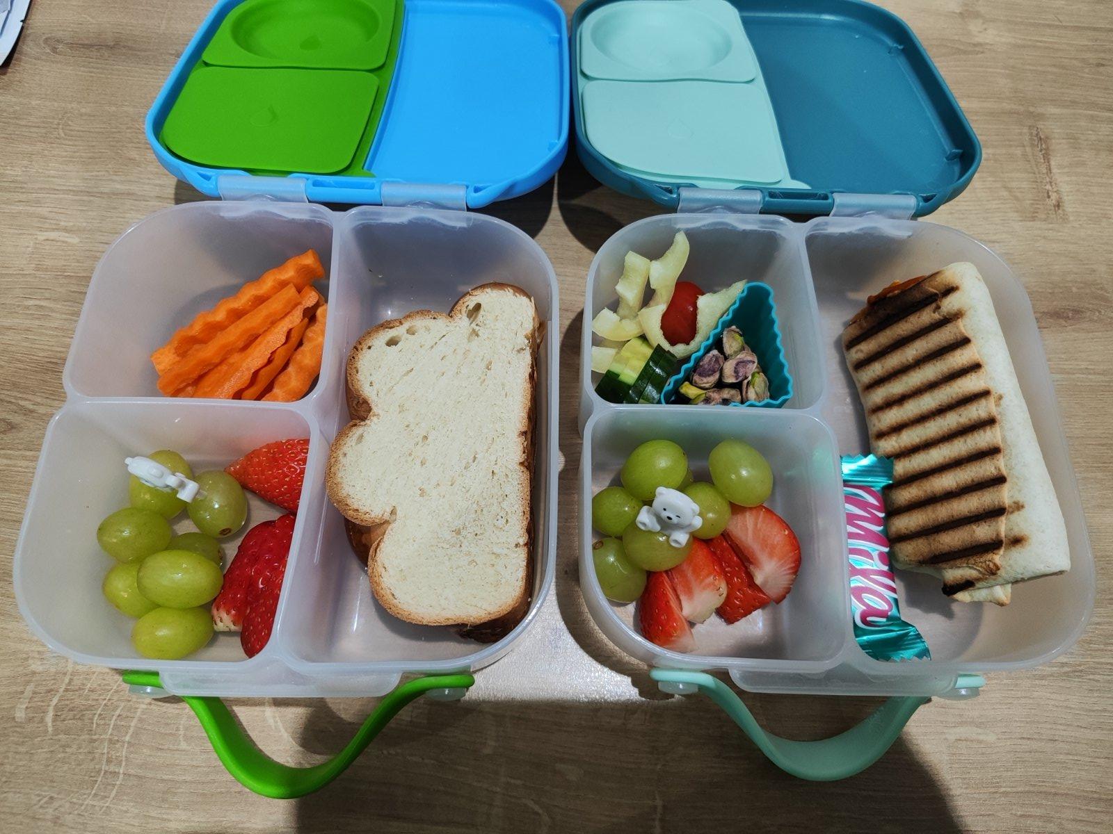 Pravy box: zapecena tortila s krcupom,sunkou a syrom. Jahody,hrozno,paprika,uhorka,rajcina,pistacie,mlska🙂