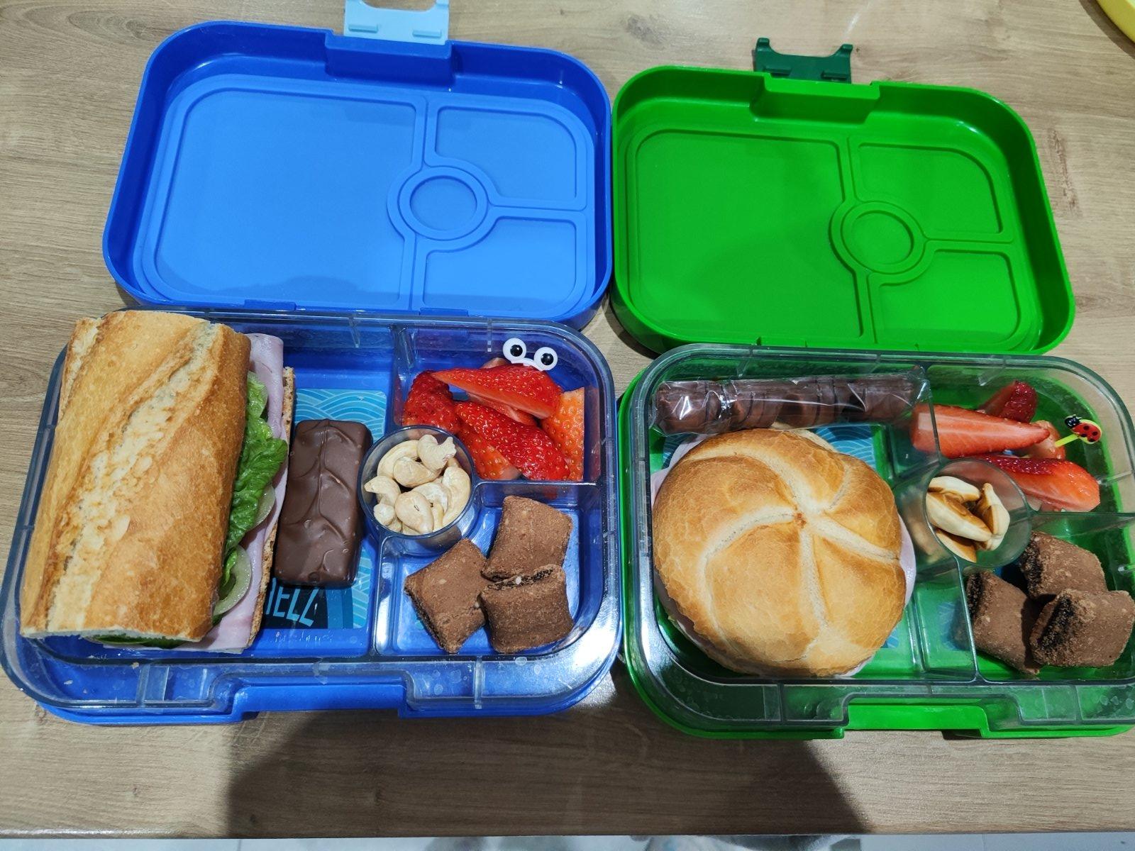 Pravy box: kaiserka s maslom sunkou paprikou,jahody,slany snack,vanesky,kinder bueno🙂