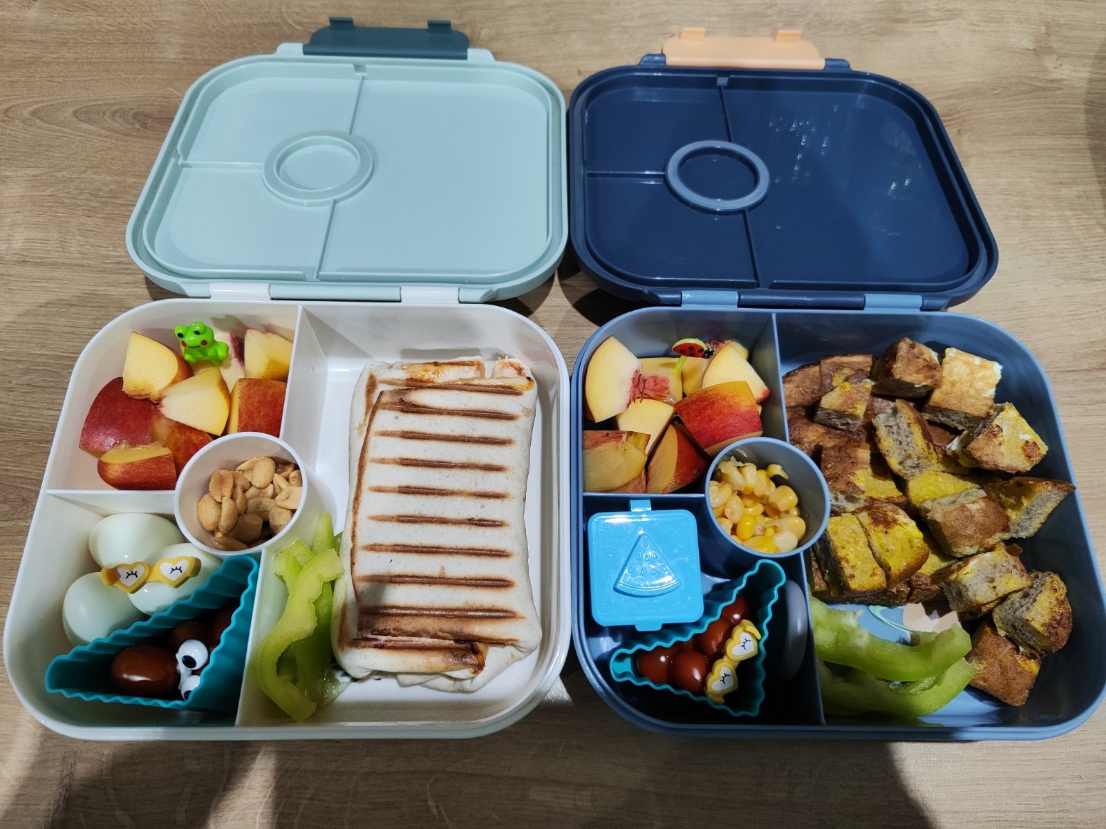 Pravy box: chlebik vo vajicku, v dozicke kecup,kukurica,domace paradajky,paprika,nektarinka🙂