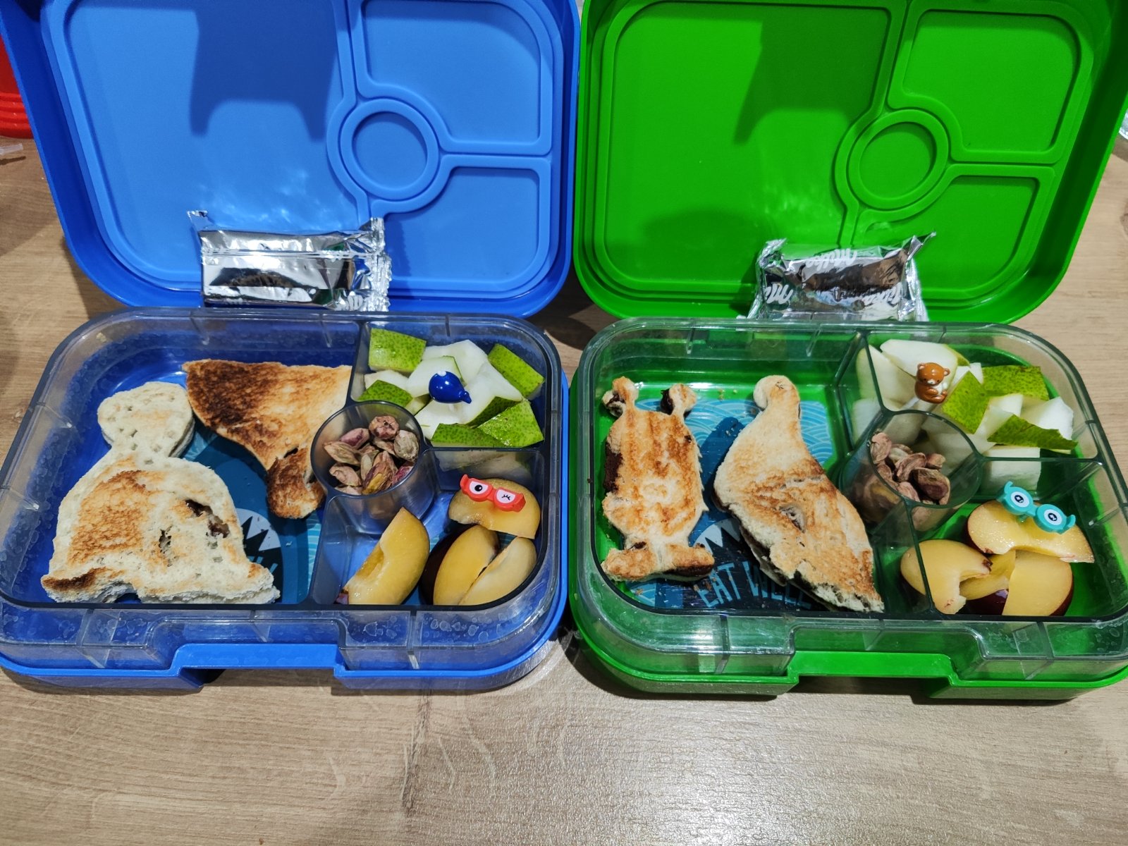 Na zajtra sladka desiata- zapecene nutelove tousty,ringlota,hruska,pistacie a mlska🙂