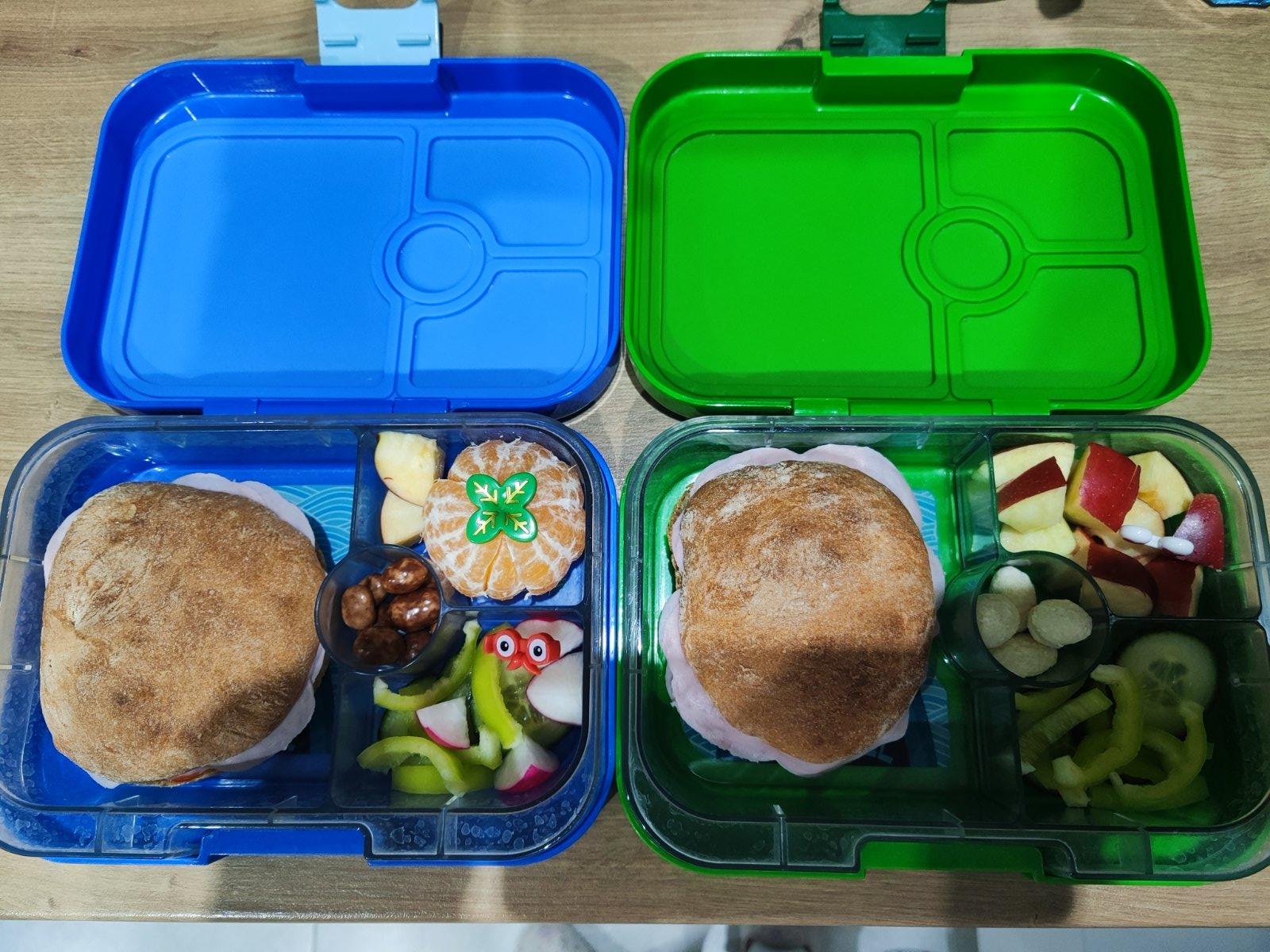 Domace ,,chleba,, zemle s maslom a sunkou, paprika,uhorka,redkovka,mandarinka/jablko,oriesky v slanom karamele alebo v bielej cokolade obalene kokosom.