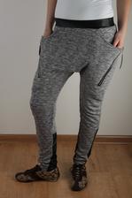 Štýlové tepláky so zníženým sedom, v páse je gumička je možné ich pohodlne natiahnuť.