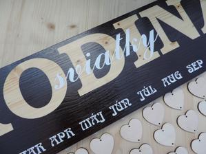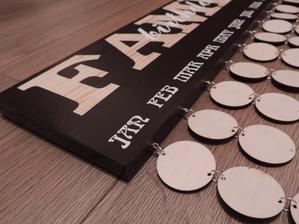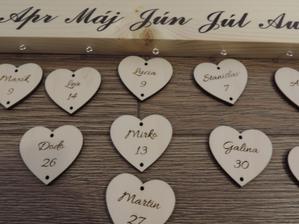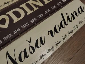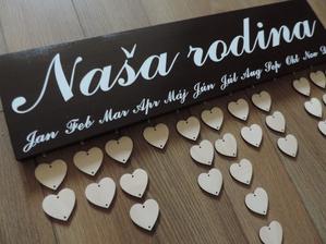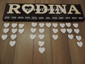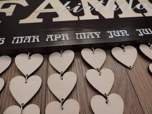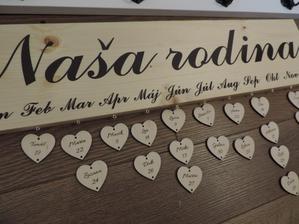 Na tabuľku použijeme drevo masív a prívesky budú z preglejky, kde vygravíruje manžel mená a dátumy.