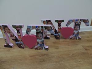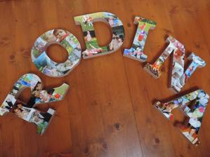 Písmená a čísla sú vyrezávané zo špeciálneho tvrdeného polystyrénu a zdobené graficky spacovanými fotografiami.