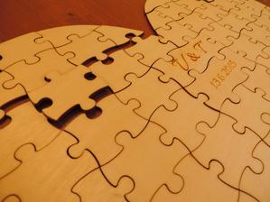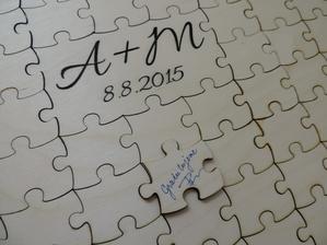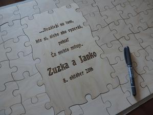 Zábavná drevená kniha hostí na svadbe.Hostia sa podpíšu a napíšu prianie na jednotlivé elementy.Vyrezávané laserom.
