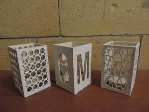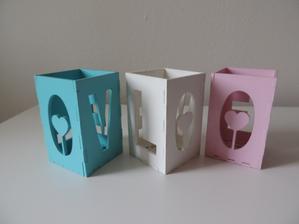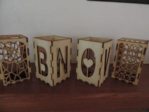 Svietniky z dreva, gravírovanými ornamentami, s nápisom LOVE, HOME, rôznymi písmenami...