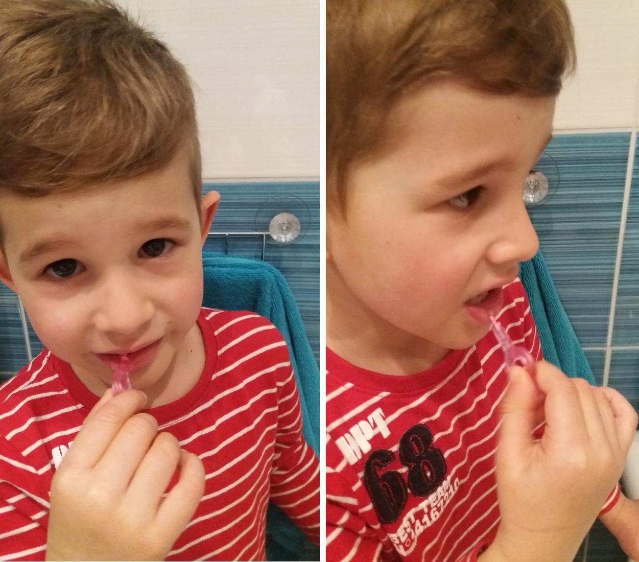 Teraz sa strašne teší, že už si umýva zuby s „dospeláckou“ kefkou a k tomu ma ešte Single, čo je preňho úplná novinka.