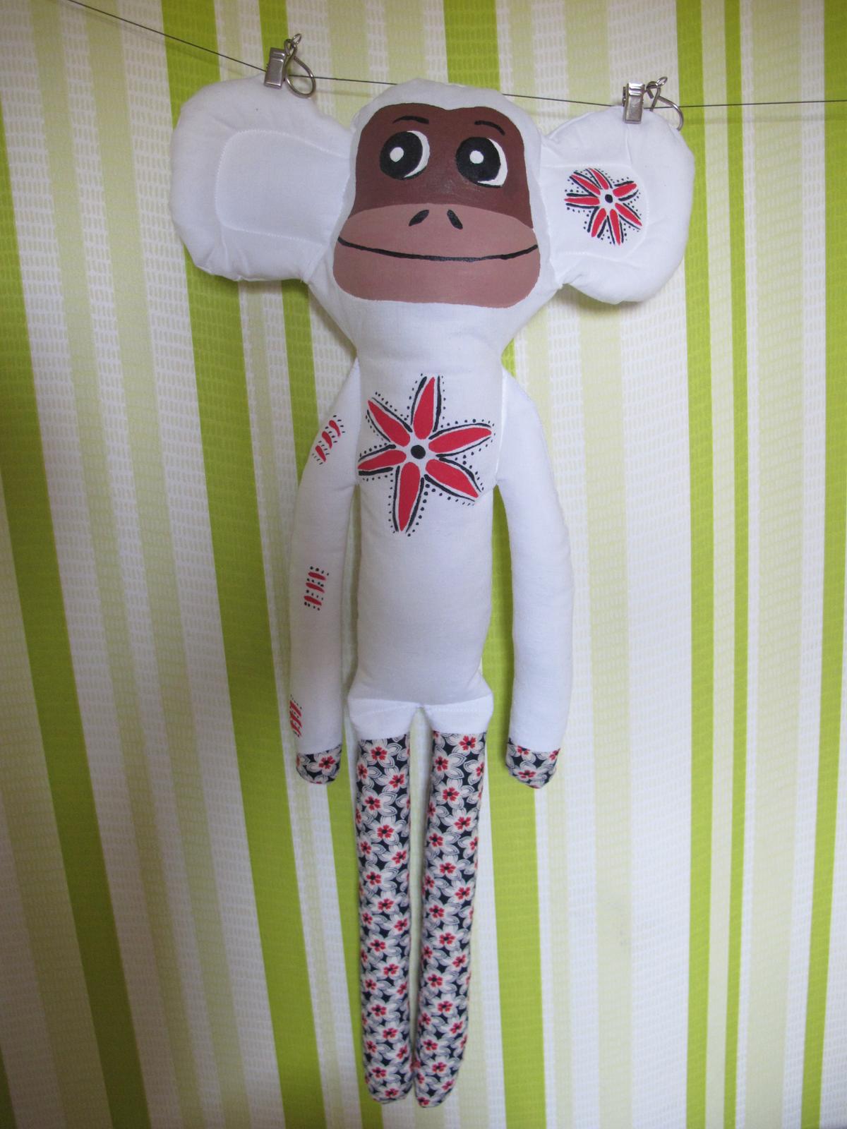 na bielej látke sú kvety ručne maľované 🙂