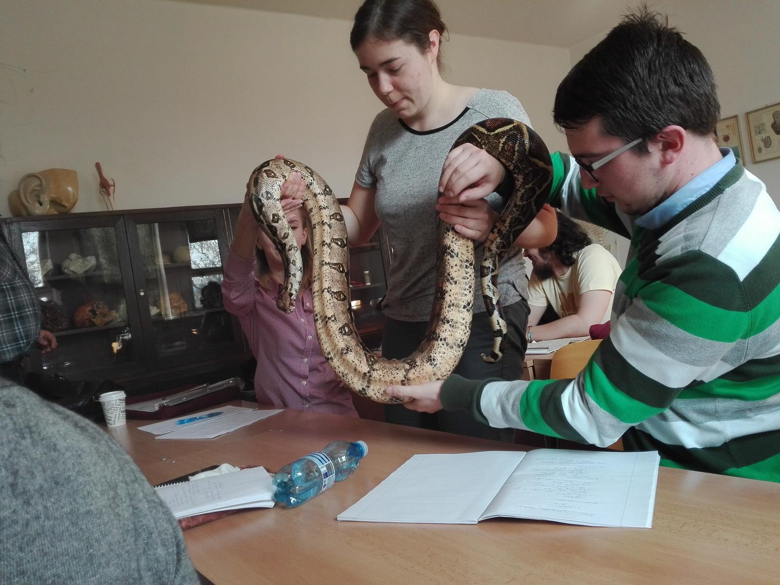 Uzovka, asi hladka. Pokial mala pekne okruhle oci, tak uzovka. Vretenica ma take strbinky. Ale hodinu herpetologie som si odsedela iba raz. Tiez sme mali peknu hadicku, volal sa bobo 😁