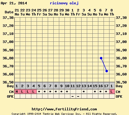 Moj graf vyzerá tento mesiac podobne - až 2 teploty a menzes na 21 den :(