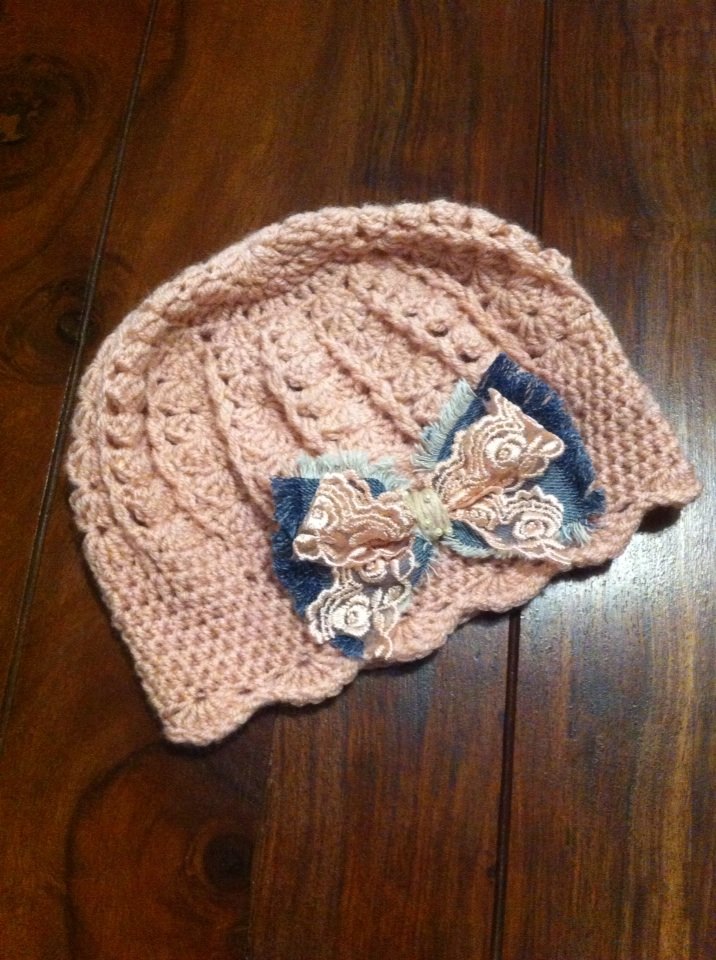 @leart poprosím ťa takúto čiapočku, avšak čiapočka by bola biela a čipka ružová, ako na tejto fotke, ale tvar mašličky aj štýl uháčkovania tento ;)