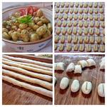 Zemiaky po uvarení zlejeme a vychladnuté ošúpeme. Pretlačíme ich cez lis alebo roztlačíme aby nezostali v ceste hrčky. Do misy k zemiakom prisypeme múky, žĺtko a kokosové mlieko. Cesto dôkladne premiesime. Cesto bude lepkavé. Preto si drevenú dosku dobre pomúčime. Cesto si rozdelíme na 6 časti. Rukami vyvaľkáme valce hrubé cca 2,5cm. Pomúčeným nožom nakrájame asi 2cm široké gnocchi. Pripravíme si čistú ľanovú utierku a príborový nožík. Gnocchi vyšúľame do požadovanej formy a na stred pritlačíme nožík, aby sa nám gnocchi pekne formovali (vyzerajú ako kávové zrná). Každý kúsok položíme na utierku a necháme postáť kým nedokončíme prvú várku cca 20 ks. Vo veľkom hrnci necháme zovrieť vodu, ktorú osolíme. Do vriacej vody hádžeme gnocchi, ktoré po pár minútach vyplávajú na povrch. Vody musí byť dostatok aby sa neprilepili o dno. Vyplávané necháme zovrieť cca 1-2 minúty. Vyberieme ich deravovou naberačkou a dáme do keramickej misy. Ihneď ich polejeme troškou oleja aby sa nezlepili a nestvrdli. Ja som podávala s paradajkovo bazalkovým pestom.