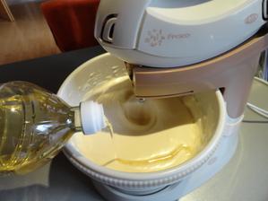 Postup: bielka oddelíme od žĺtkov, žĺtky v poháriku dáme bokom. Bielka vyšľaháme mixérom do tuha. Ja zisťujem či sú dosť tuhé tak, že keď prevrátim misu hore dnom dobre vyšľahané bielka nevypadnú 😀 /veľa šťastia pri skúšaní 😀 😀 😀/. Keď sú dosť tuhé, počas miešania pridáme postupne cukor. Ten chvíľu vmiešavame kým sa nerozpustí, hneď za ním po častiach žĺtka, pekne jedno po druhom. Potom pomaličky vlievame olej, nesmie sa tam tresknúť naraz inak sa cesto zdrcne. Keď je vmiešaný pridáme postupne prášok do pečiva-celý, 3 PL hrubej, 3PL polohrubej a 3PL hladkej múky - postupne za stáleho miešania nie naraz. Nakoniec po lyžiciach pridáme aj 6PL pomletých vlašských orechov, keď pridáme tie už nemusíme použiť mixér, stačí premiešať vareškou jemne. Vlejeme do vymastenej múkov vysypanej formy a pečieme pri 180-200 cca pol hodinu.
