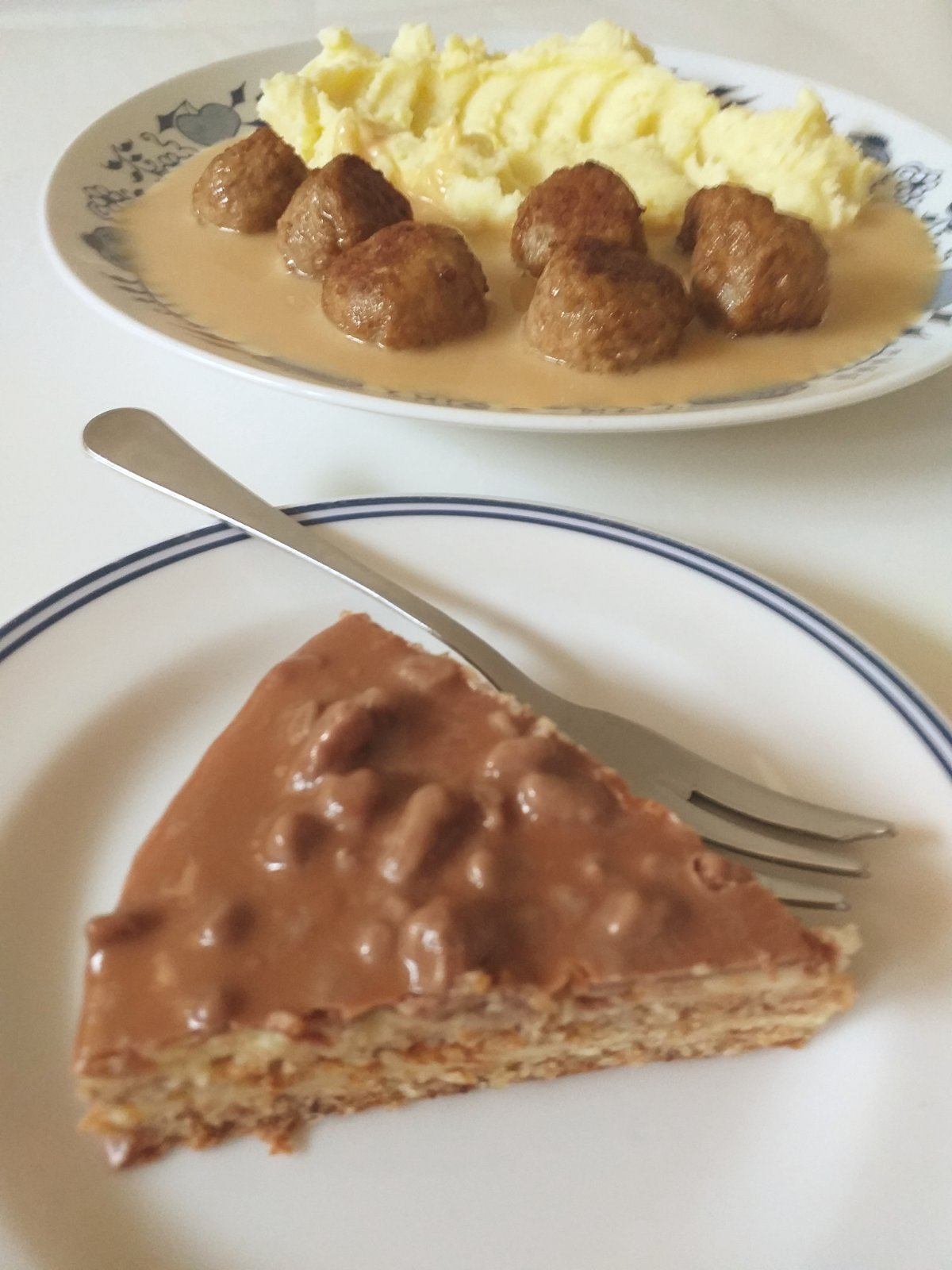 To vyzera ako Ikeacke menu - kotbular so smotanovou omackou a mandlovo-coko kolac🙂