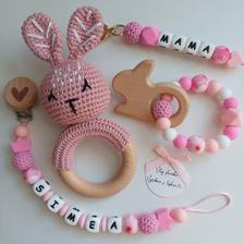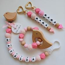 Čo som zatiaľ vytvorila pre dievčatko 🩷🩷 Retiazky na cumlík - s menom aj bez, s karabinkou aj bez💛 Hryzadlá - s dreveným zvieratkom/autíčkom, aj bez❤️ Retiazky na kočík💜 Retiazky na vajíčko🤍 Kľúčenky