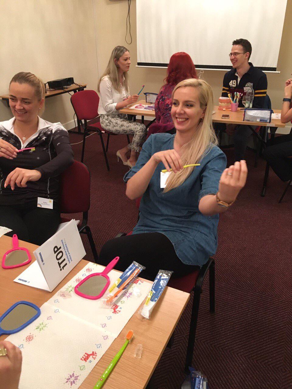 Prednášky sa striedali s praktickou inštruktážou a na moje prekvapenie, nenudila som sa ani minútu. Dokonca bolo informácií toľko, že nám nestačil ani časový limit. Prezentácie viedli zubní lekári a dentálna hygienička, ktorí síce spolupracujú s Curaproxom, ale ani náhodou nám netlačili do hlavy kaleráby v snahe čo najviac ich produkty spropagovať.