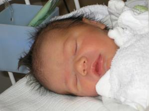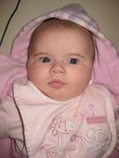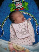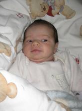 Ahojteee, tak som uz tu, na svet som prisla v piatok 28.11.2008 o 0:40, rychlo, bez problemov a s mierami 3350g a 50cm. Som vlasata nadherna, a volam sa