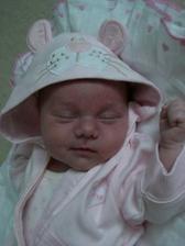 Ahojte, volám sa Lenka Löfflerová, na tento svet som mala prísť pôvodne 25.10.08, ale kedže som sa nevedela dočkat svojích rodičov tak som sa trošku poponáhľala a 14.10.08 som sa po 6 hod. o 11.40 konečne ukázala mojej mamine a tatinovi, moja váha bola 3180g a dlžka 48 cm.V nemocnici ma nazvali mala bambuľka s užasnymi vláskami, veď posúďte sami.