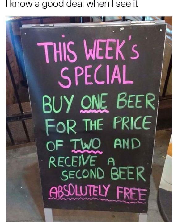 V preklade: kúp jedno pivo za cenu dvoch a obdržíš druhé pivo absolútne zdarma.