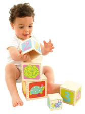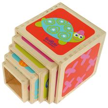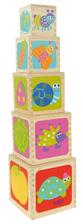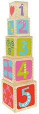 Päť kociek z dreva z ktorých je možné poskladať pyramídu. Kocky je možné vkladať jednu do druhej.