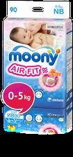 Moony AIr Fit je prvá plienka na svete, ktorá využíva výsledky vyspelej japonskej technológie. Pri používaní týchto plienok sa môžete cítiť bezpečne pokiaľ ide o vznik zárezov, zaparenín a podráždenie citlivej pokožky Vášho dieťatka.