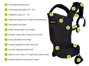 Integrovaná vložka pre miminká. Ergonomický dizajn, patentovaný systém oporných pásov na nožičky a rôzne úpravy robia s tohto nosiča perfektného pomocníka pre vašu rodinu.