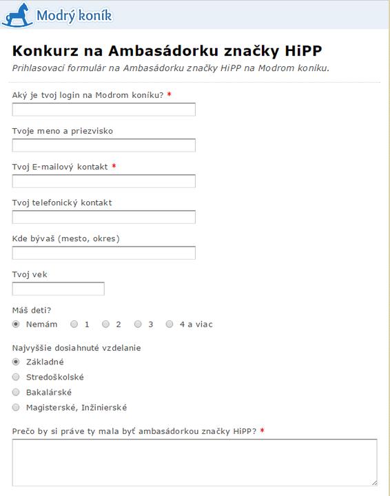Mohlo by niekoho zaujímať 😉 Pokiaľ dobre čítam, tak tentoraz stačí vyplniť takýto krátky dotazník 😉 Viac info: https://www.modrykonik.sk/blog/gradan/article/hladame-ambasadorku-pre-hipp-enmqva/ Držím prsty kolegynka 😉