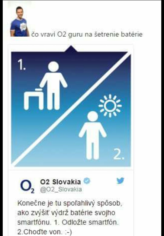 Ako raz dávno povedal O2guru - zaručený tip na šetrenie batérie je nechať mobil doma a vyraziť von.... 😀 👌 🌄 ✅ #o2_tip & #o2_vtip 🙂 👏