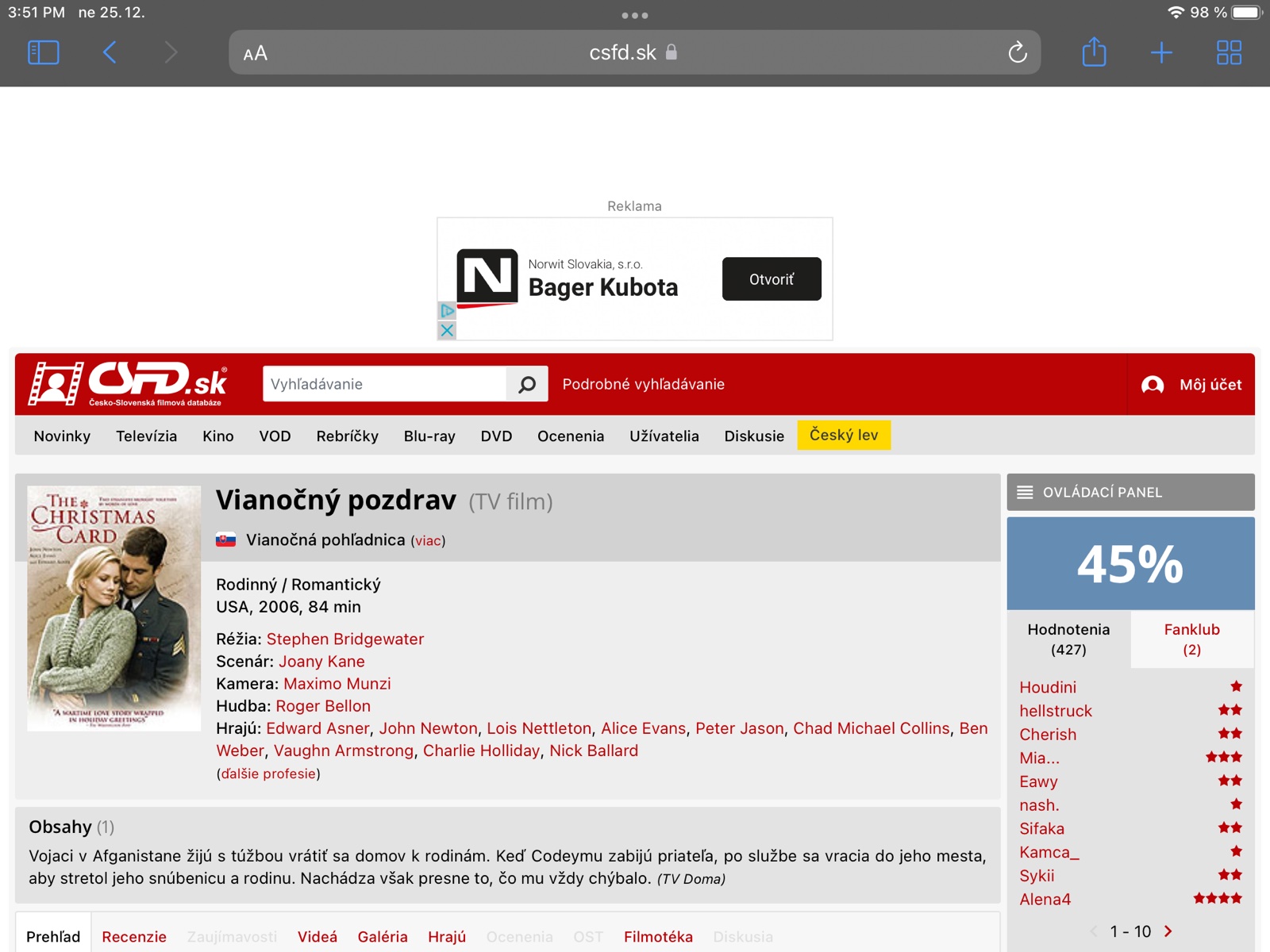 Poradte Vas najoblubenejsi vianocny romanticky film, nech si pozrieme a dcerou. Dakujem. Raz som videla jeden vianocny, hlavna predstavitelka mala obchodik a zalubila sa do zakaznika...ale neviem nazov uz🙃