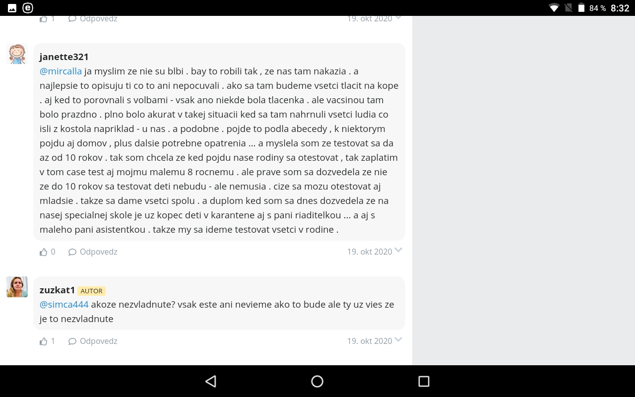 Je mi ľúto každej obete Covid19, či vážne chorých ale dnes... som stratila slov... som oblickarka, pozorovana, zatial ESTE nie na dialyze ale co nebolo, lahko moze byt a pani v nemocnici na informaciach aj po vysvetleni situacie,ukazaniu papierov a problemu aky mam ma poslala prec ze nevysetruje sa. Mam ist za svojim urologom. Moj urolog robi prave v tej nemocnici,kontaktovala som ho,neodpoveda,z davnejsia viem ze robi na covid aro. Ale moju situaciu vie vyriesit aj iny urolog.Dovolat sa ani bohovi niekde nieje mozne, a teda..so vsetkou uctou ku vsetkym lekarom, sestram, pacientom politikom a atd.. pytam sa, vazne ma obycajny nie pozitivny clovek zdochnut ci pohorsit si zdravie az do hranic extremov?