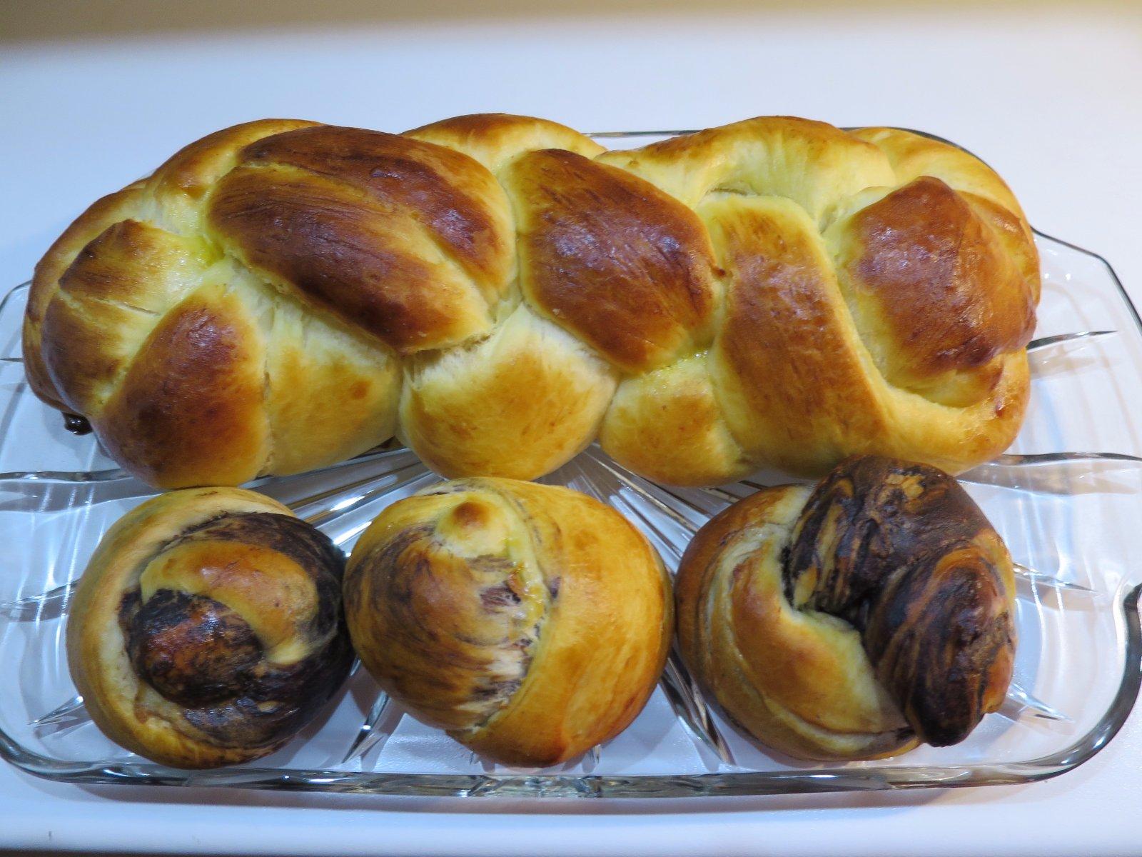 250g hladkej muky, 200g polohrubej muky, 200ml sladkej smotany, 1 cele vajce, 1 bielok, 1/4 KL soli, 40g kr cukru, 1 sacok vanilky, drozdie. Spravime kysnute cesto, nechame vykysnut, rozdelime na 5casti, usulame s nich dlhe pramene a zapletieme. Nechame asi taku pol hodku kysnut,potrieme jednym zlkom (co nam vystalo z cesta) co rozhabarkujeme s mlekom (1PL). Pecieme v predhriatej rure 180 st a ked uz chyti farbu znizime teplotu na 160 st a dopecieme.