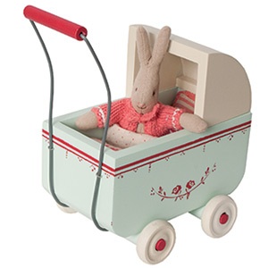 Malý drevený kočík, modrý