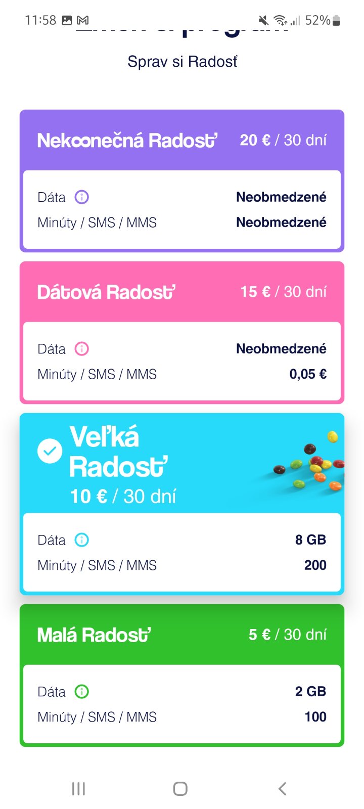 Mám radosť asi mesiac a všetko ok 👌, syn má už rok. Odišla som z O2, radosť patrí pod nich.