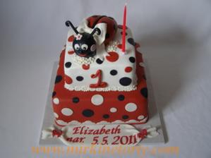 Teším sa ,že sa Vám tolkým páči torta- mali sme oslavu tak som si vymyslela,že ked mame takú lienočku tak bude mať -Lienkovu oslavu. A tak začali lienkove prípravy. My všetci sme si urobili klobúčiky v tvare lienky- to sme malovali so synom. A ja vecer pred oslavov som si o 23.hod sadla a začala malovať obrovsku jednotku, a k tomu velkú lienku. Dcerke som urobila maličkú kytičku červenú, taktiež s lienkami... A dalšie lienkové doplnky.... Bola som velmi šťastná......