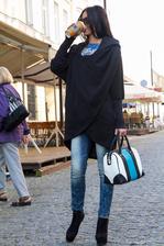 Bundička-Poncho tmavomodrej a čiernej farby,v ponuke vo veľkosti UNI,cena 26.60€.