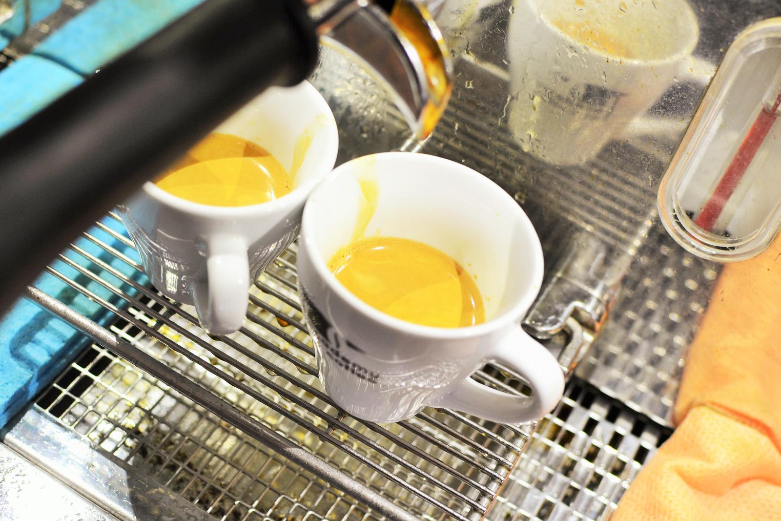 A moja prvá objednávka: 2x espresso. Jasné, musím popracovať ešte na estetickej stránke.