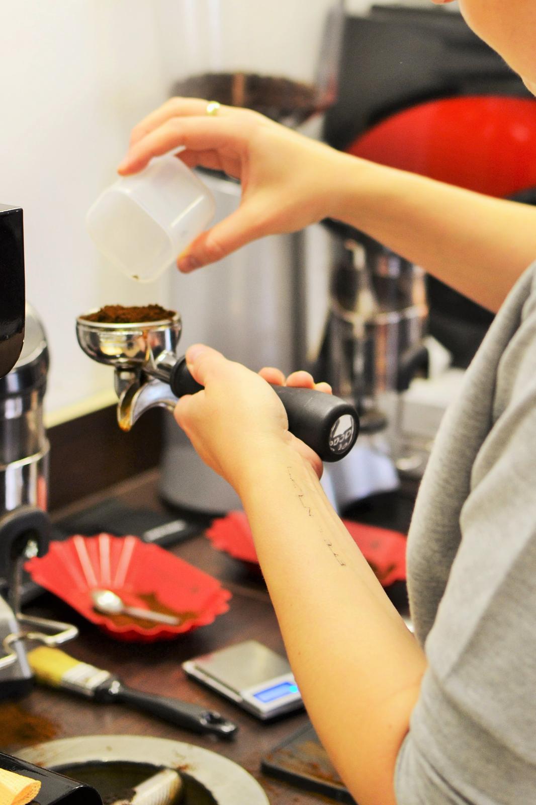 3. Teraz si môžeme nadávkovať pomleté kávovníkové zrná do portafiltra.