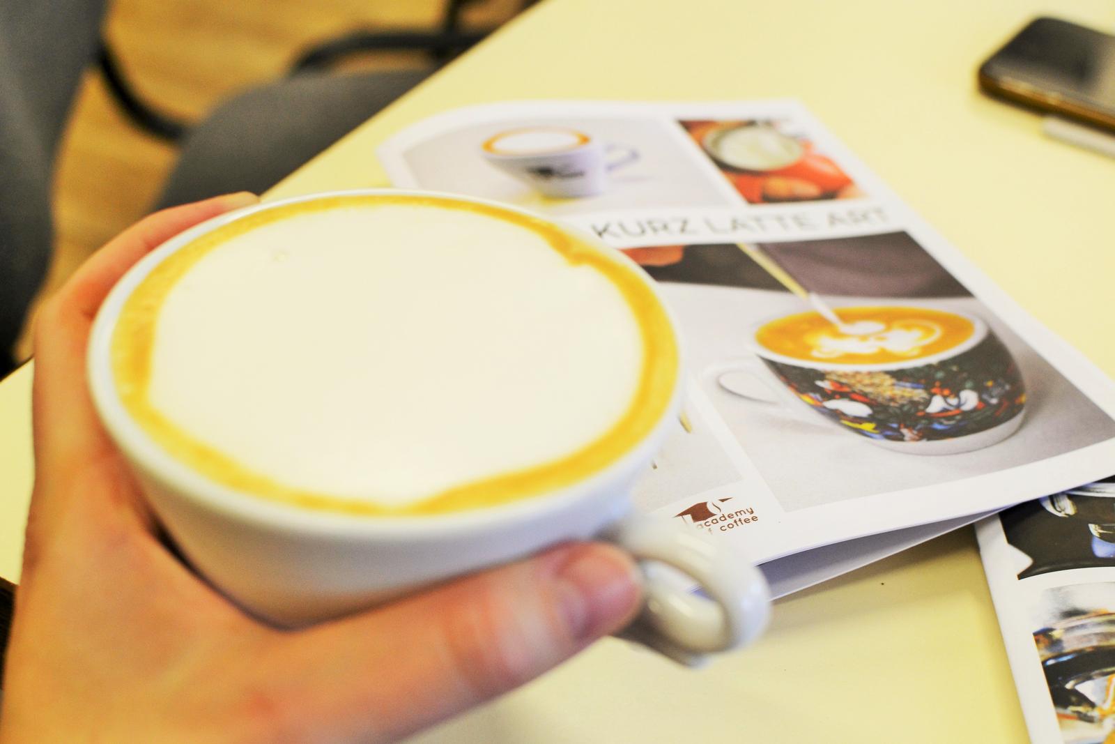 Po príchode na kurz nás usadili v prezentačnej miestosti, kde sme počkali, kým prídu všetci 5 prihlásení účastníci. Sympatická lektorka už mala všetko krásne pripravené, kávové stroje sa leskli čistotou. Pri otázke, čo si dáte, padla jasná voľbá na Capuccino.