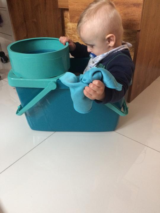 Za ten svet nechce chodiť na nočník. Vždy začne plakať, tak kedže ho nechcem nútiť, dám mu späť plienku. Išla som zapnúť práčku a nastalo podozrivé ticho. Zavolám na malého “Lukinko kde si?”. Nič. Ticho. Ani obraz, ani zvuk. Prídem do pracovne a on takto naskladaný vo vedre 😄 a hádajte čo tam robil? 😄😄