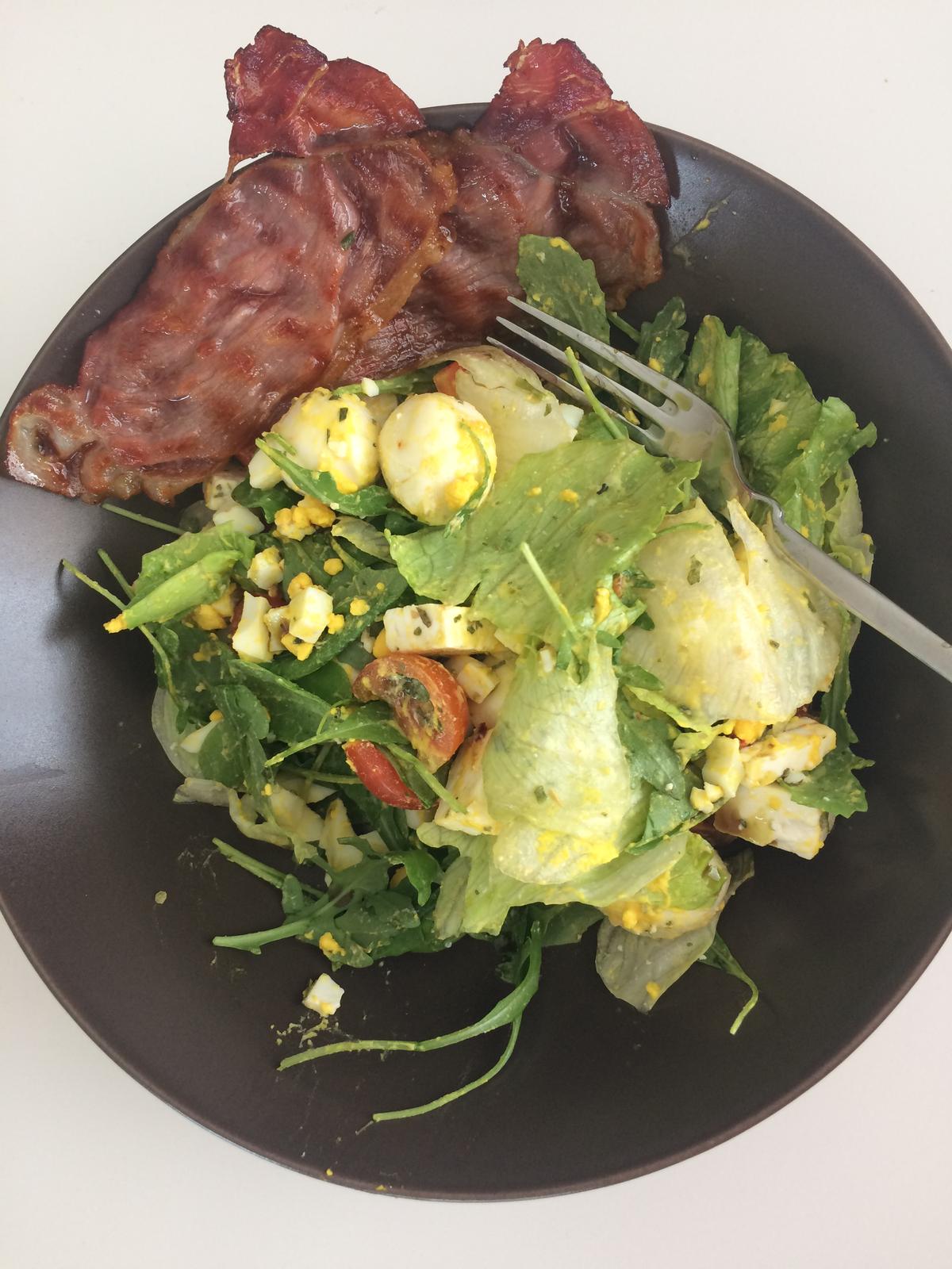 Zeleninovo- vajíčkový šalát s opečenou schvartslantskou šunkou