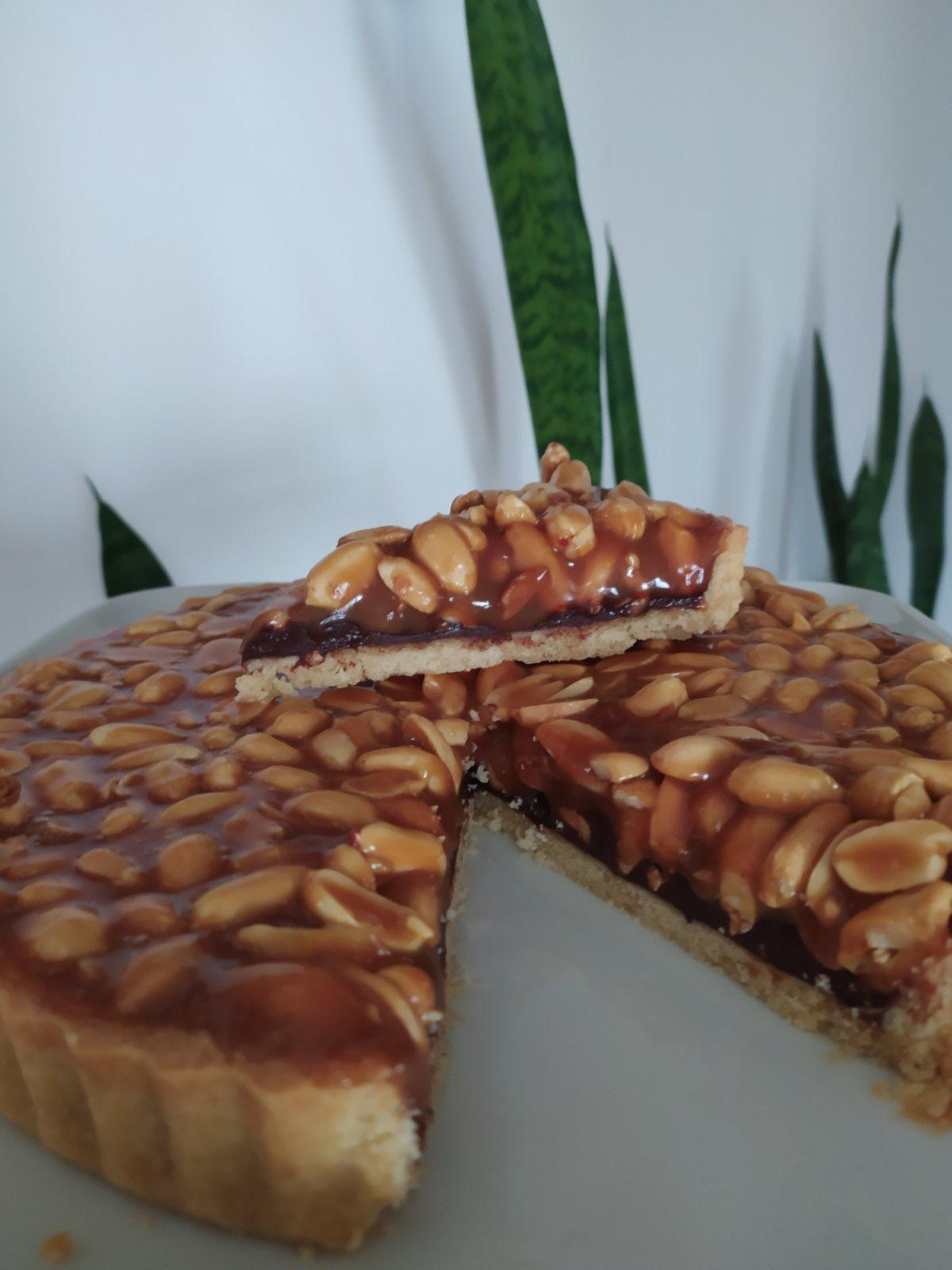 Arašidový tart. Linecké cesto, čokoganache, arašidy v karameli.
