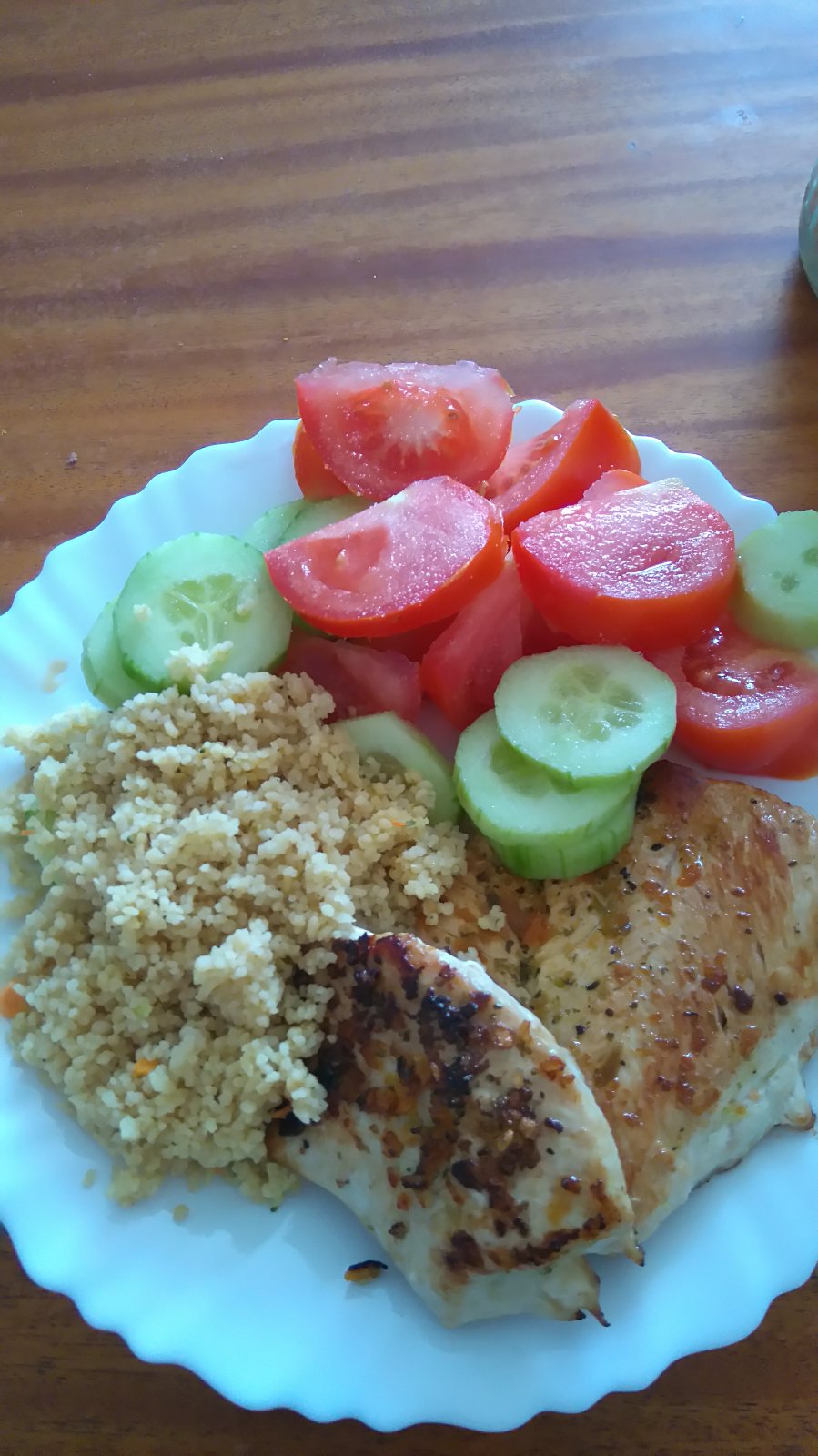 celozrnny kuskua,kuraci steak ,obloha