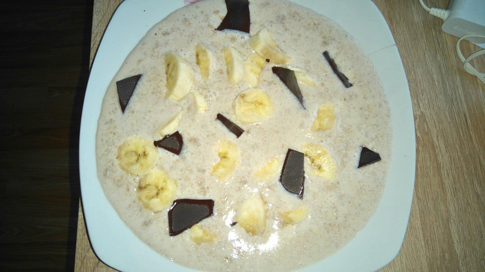 pohankova kaša s čokoládou (76%) a banánom, oslabená medom
