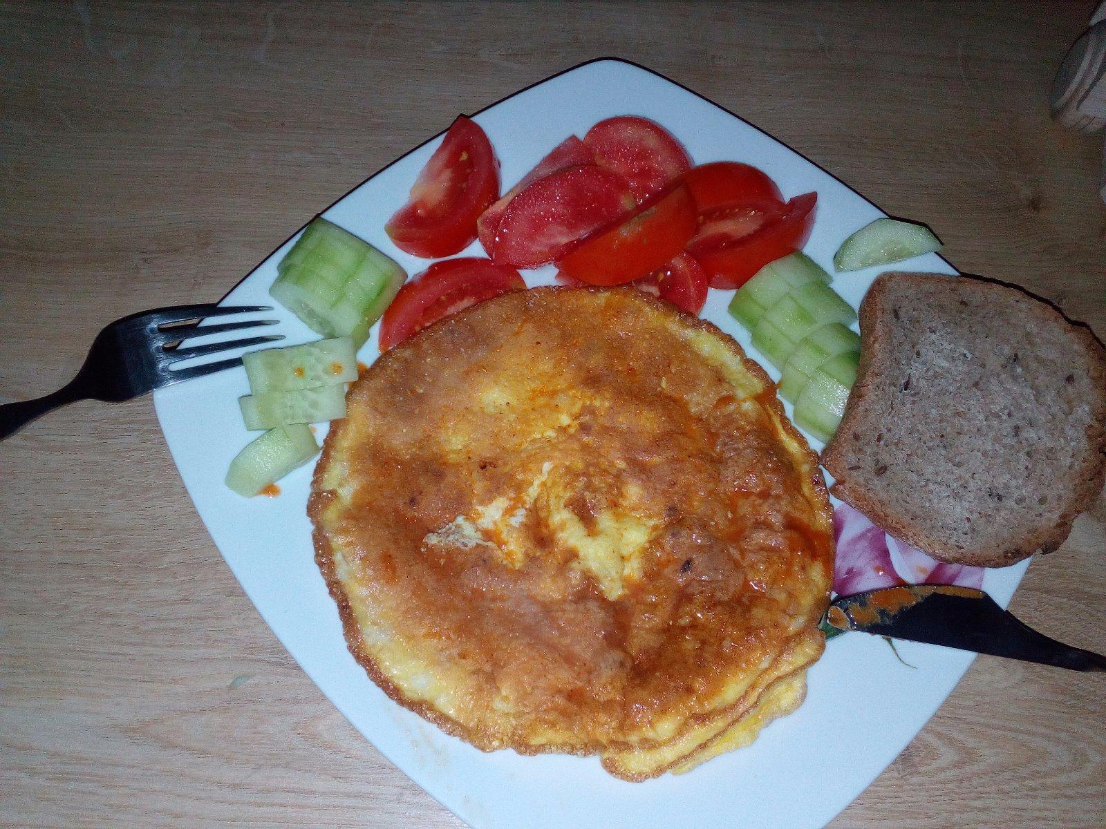 Ranajky,vecera omeleta z 2vajicok, zelenina, slatinský celozrnny chlebik :)