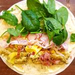 2. Naukladáte na ne obľúbené dobroty: natrite placku majonézou alebo jogurtom, opečeným morčacím premiešaným s pestom, baby špenátom, chilli, korením, plátkami avokáda a reďkovky, opečenou a nasekanou šunkou alebo slaninkou.