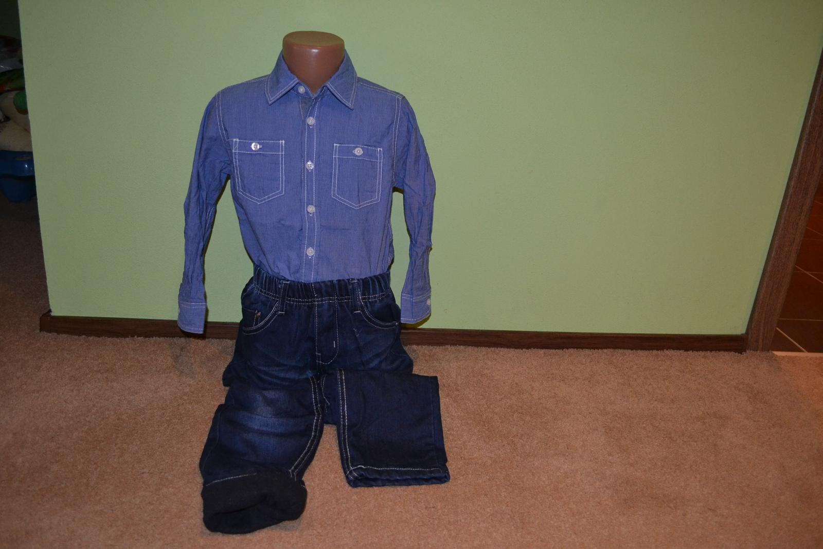 Košeľa + zateplené rifle veľ. 110,116,122,128 cena 20,80 Eur