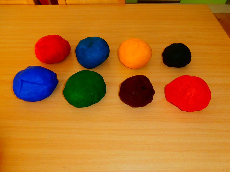 varena plastelina, recept 150 muka,300 ml voda, potravinárska farba, 70 g sol, 1PL ocot, 1PL olej - zamiešať a variť až kým nezhustne