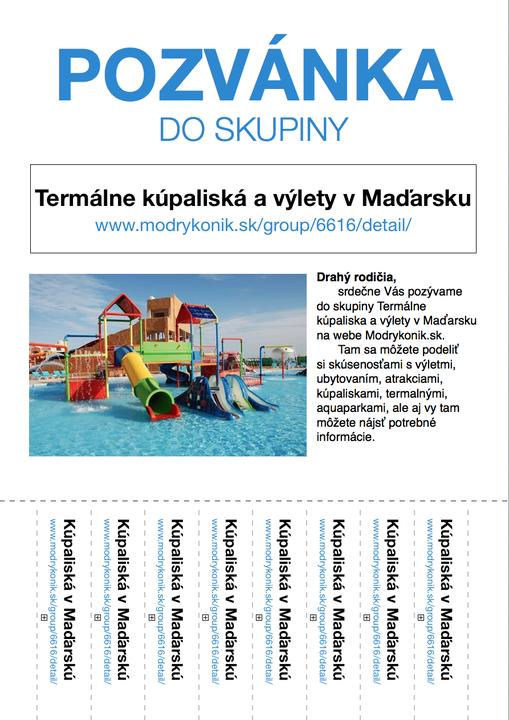 Čaute, ak máte skúsenosti s výletmi, ubytovaním, atrakciami, kúpaliskami, termalnými a aquaparkami tak sa pridajte do skupiny https://www.modrykonik.sk/group/6616/ a podeľte sa so svojími zážitkami
